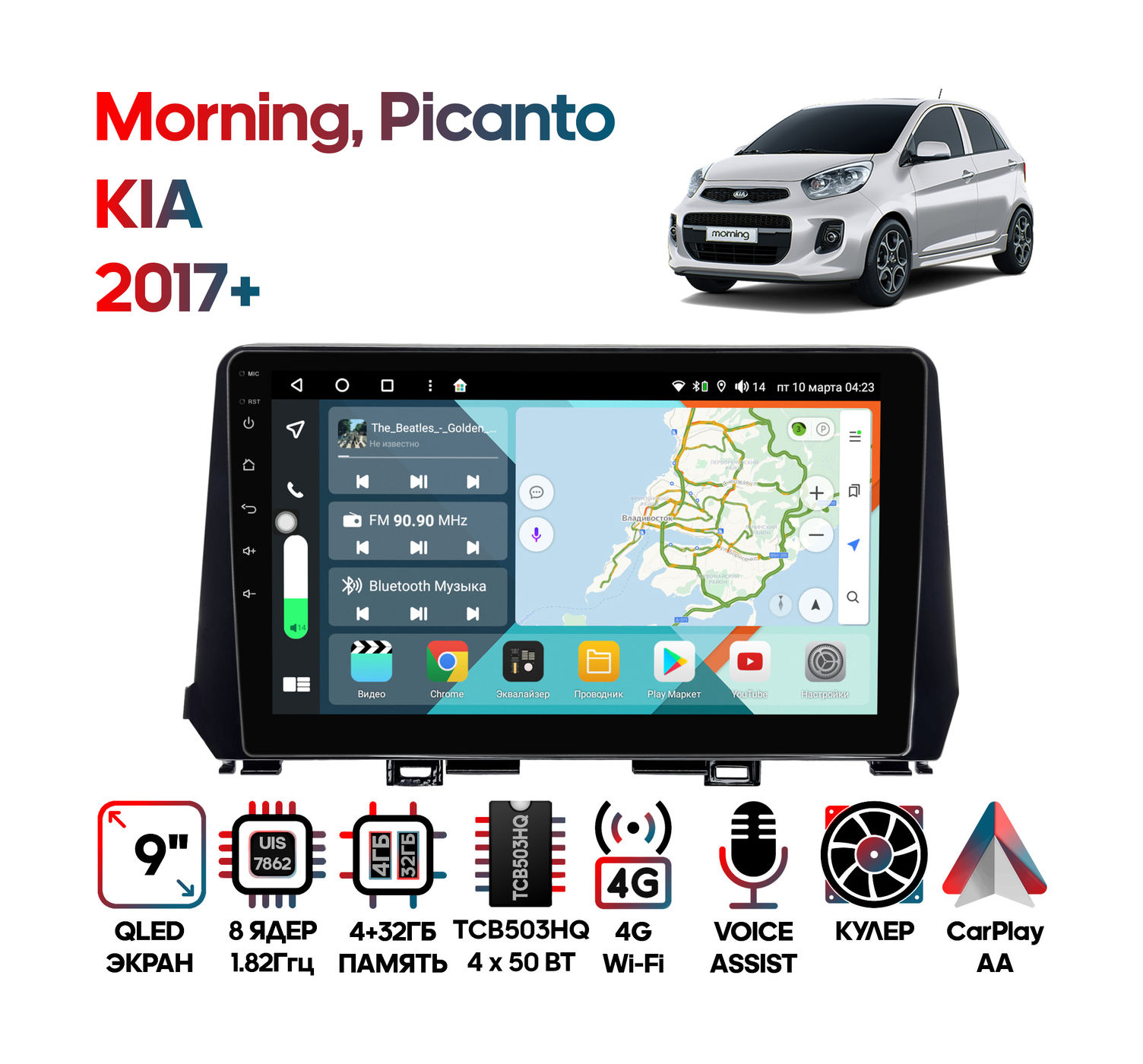 - Характеристики: Android 10, 4/32GB, 8 ядер, 4G, TCB503HQ, DSP, SPDIF, QLED, 9", 1280*720