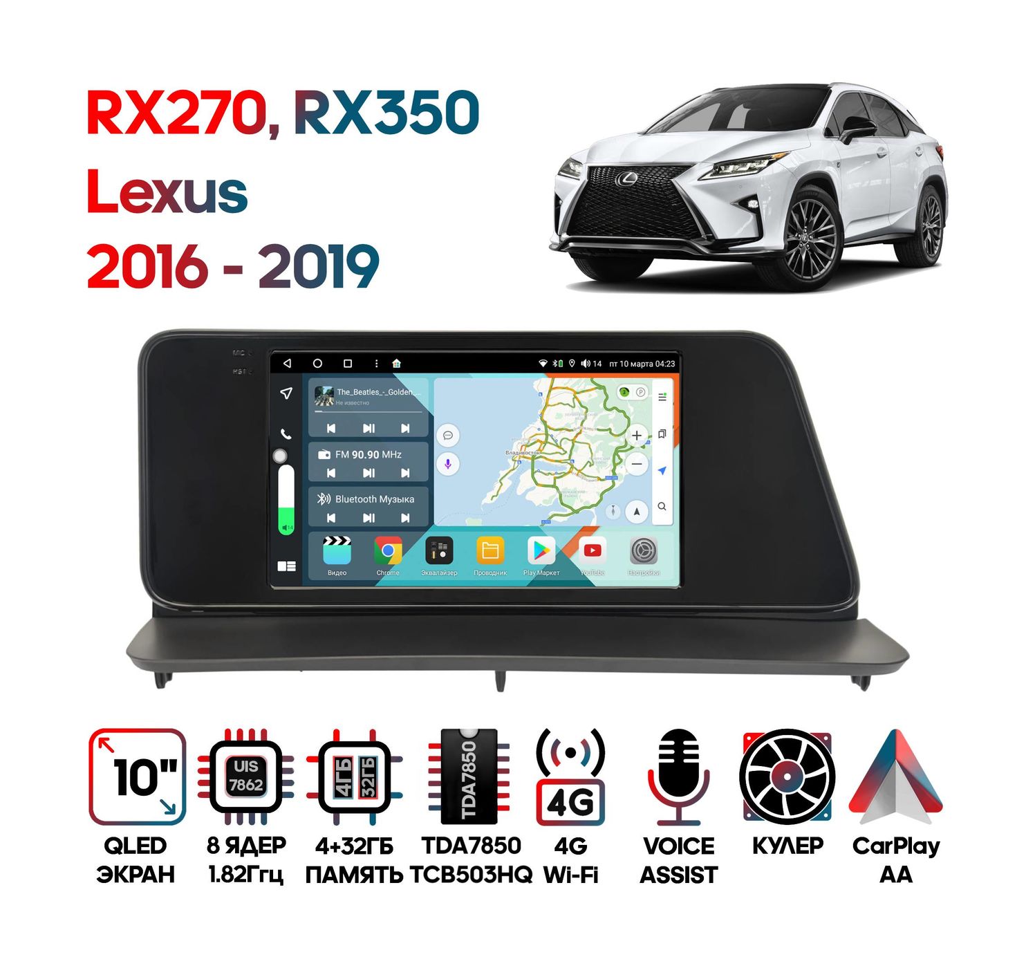 - Характеристики: Android 10, 4/32GB, 8 ядер, 4G, TCB503HQ, DSP, SPDIF, QLED, 10", 1280*720